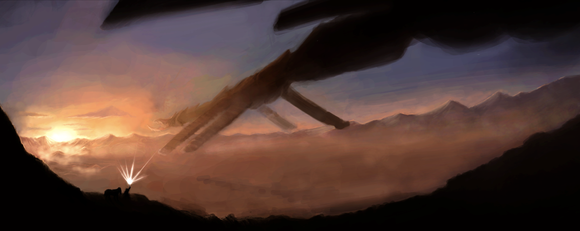 Great job, I like the way the atmosphere muddles his silhouette, almost like a shadow upon the world!