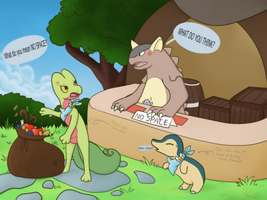 Uro tries to teach the Scraggy that you can't sell things illegally, but it looks like he's hired some guards!+1 Point