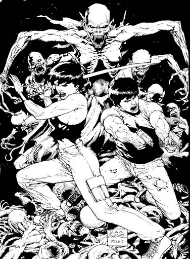 In this piece, I've use nibs. Now I work with regular drawing pens & pentels. No digital. Thanks! Hey, nice Squid Beast!