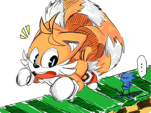 I loved the Sonic games when I was little. Right now, I don't even want to try that Shadow game. Guns? Anyhow, Tails was my favorite when I was younger, though now I'm fond of several of the characters.This is just a lighthearted drawing I made one day. If I ever add a background, I'll delete this and post up the new version.