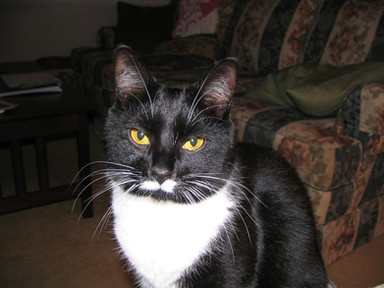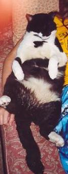 Oh, he's fat! He's a big, fluffy blonde/orange cat that has a hilarious personality. He sleeps in the most awkward positions too. He's great.