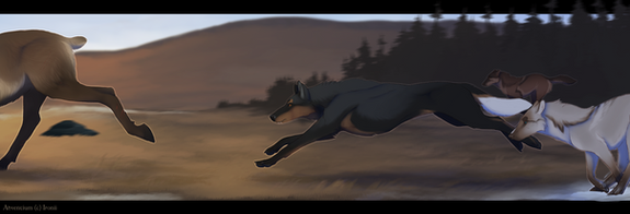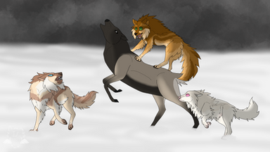 It´s supposed to me some kind of Game of Thrones fan art, in the middle you can see Ghost, the Direwolf of Jon Snow, hunting a deer in a pack. I tried to make it look like it´s beyond the wall.