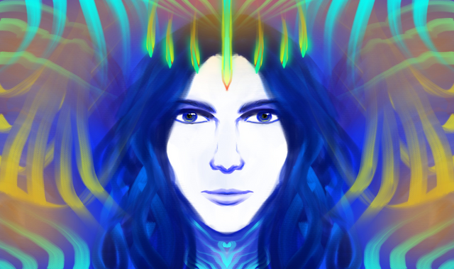 Im here, I experiment with #autodesksketchbook and love the efect neon, and I used in a random portrait ...a little magic? a witch? Idk... Too much violet there.