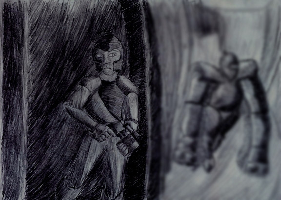 I was planning on finshing both of these before showing them, but I need textures and some finshing touches on some of the buildings in the street, and a head for the figure. Also, probably some fixing up too, there's a fair bit wrong with it...The figure is going to be a basic referance that can be molded into characters I want to make. The street is going to be the second of my cities, a grimmer part of the same city in Trench.