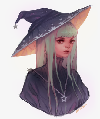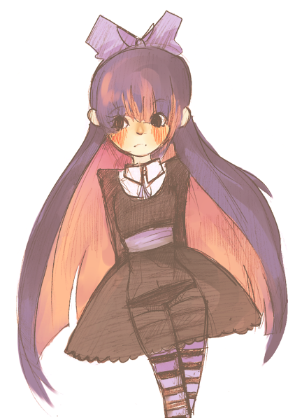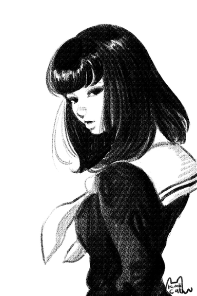 Goodness she has such a cute face! She looks so nice in your style. I really like how her hair is draped around her body. That hair bow is so well drawn too!