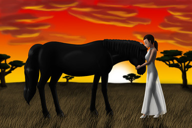 We both looked into each other eyes. I don’t know what she saw in me but I saw kindness in her. She whispered softy to me. Such gentle words you say. A horse has always been a man’s friend but also mans slave, but to her, I was the most beautiful creature she had ever seen and in her eyes I found love again. She softy strokes my nose with her small hand. “So this is what life can be, beyond this fence.”