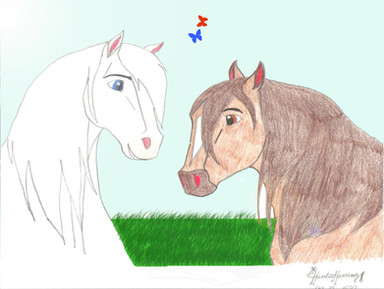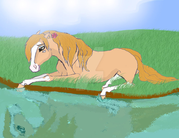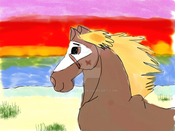 aaawwwww, i luv her!!! i also luv how u drew horses playin in th sky in the bckgrnd