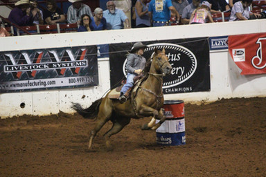 My Favorite Barrel Racing shot of the dayI just realized the horse is bit-less and has a 8ish year old riding him/her! Isn't that amazing?