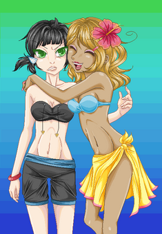 Me and my friends OCs, Calius Kirk and Shamyra (damn forget her last name) Uh..you can go look in my gallery in any of the Star Trek Folders if you're more curious