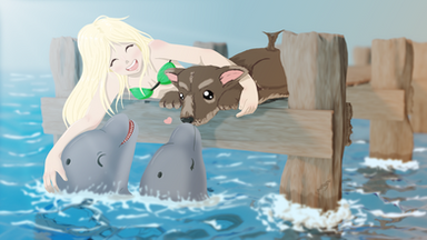 Anywho, just Calius swimming with a dolphin...