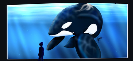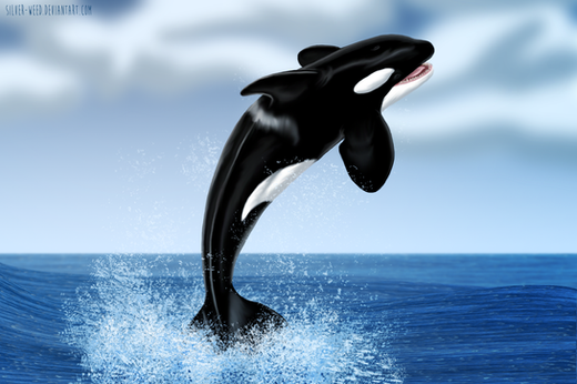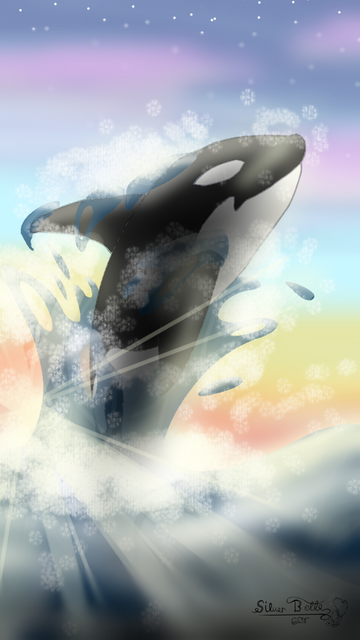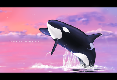 The colours alone make this picture for me, beautiful colour scheme. I love the way you draw the water brought up by the orca, very realistic.