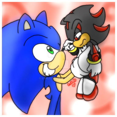 lol XD I thought if it. Think of it: Shadow's stripe color combined with sonic's main color = purple XD