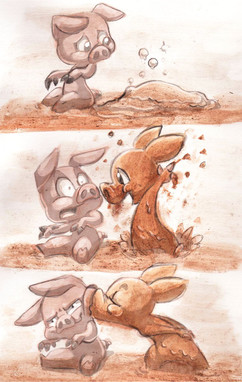 Here is an image I drew as a guest artist for Jon Ponikvar's comic, Peter and Company ! Give it a read, it's a rare PG webcomic that's just cute and funny (with great art, to boot!).It is of his main character, Peter, being tempted by those mischievous worms!