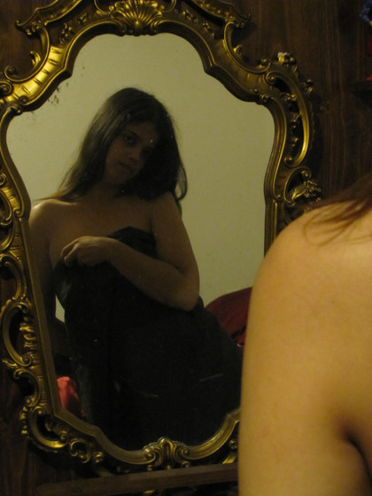 take a pic of the mirror but of behind me so i held the camera up and it was like angled down i guess