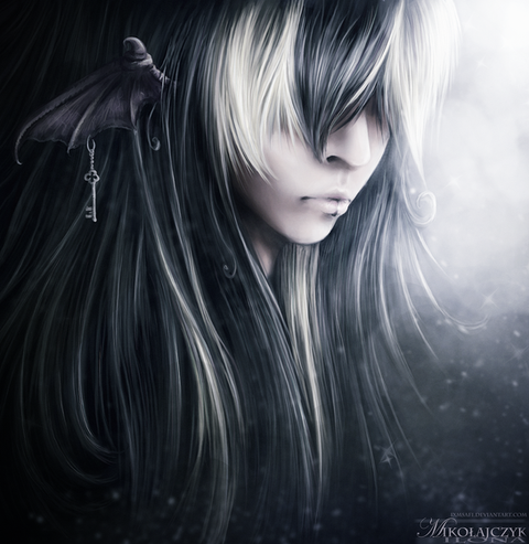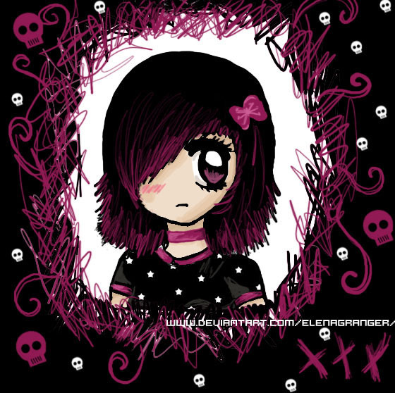 No bo patrz - czarny wyraźny makijaż, roztrzepane ciemne włoski, czarne kolory + mieszanka z różem, co daje słodką upiorność xD