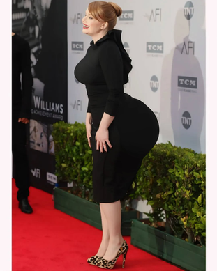 Jealous of her beauty, a competitor put a curse on her. The more steps she takes the bigger she grows. At first it seemed like it wasn't working but as she continued down the hall it was obvious that something was amiss. A tingling sensation in her butt and breasts preceded a slight pressure as they began to plump up. A few more steps caused her thighs and calves to join in; while her breasts and butt continued to grow.Step 1