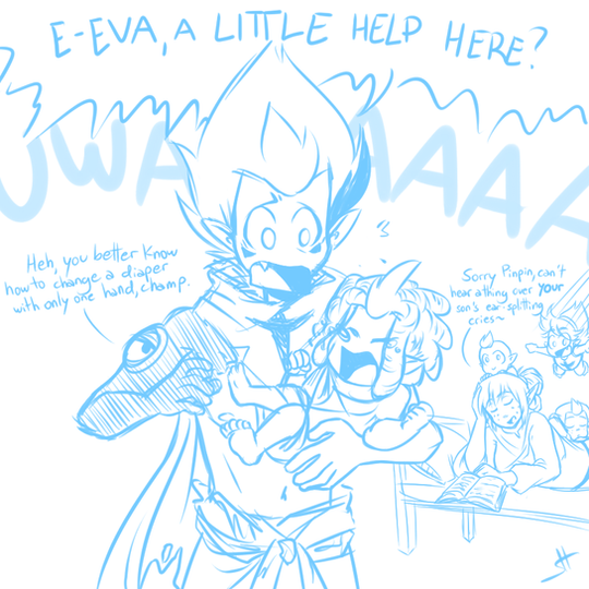 Last year I was going on a lot of walks after work to look at cherry blossoms and one particular day I was seeing a lot of young dads with toddlers and babies. Got me thinking about Larion rp wise since his partner is baby crazy and wants a big family. Anyways, led to this cute sketch with the eevee babs.Related content