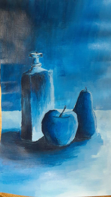 My monochromatic study for my 3d art class. Only colors used were blue, black, and white acrylic.I've never seriously touched paints before this so...I'm well aware that my technique is sloppy and inadequate.