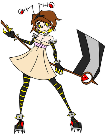 Here is my latest G.R.L.S experiment! She is designed as a sonic wave generator experiment. She can generate sonic blasts that can crumble buildings and structures to dust and even cause earthquakes with extreme bass. She is incredibly evil. However, because of her Idol like appearance she has been acting just like a music idol. So I usually find her singing and putting on a show in the lab, so I just leave her to it.I love how she turned out ^^' The Whole pop idol looks fits her sonic sound theme. her outfit is cute and I think I am getting better with drawing human figures ^^' Eitherway, Enjoy and leave lots of feedback and junk~