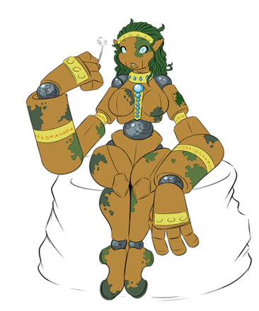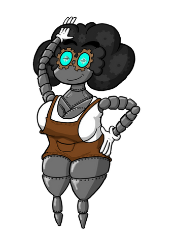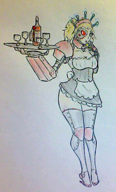 Here we have my latest female Experiment! She is designed, ridiculously enough, to Produce delicious Root Beer! Her Body Produces it and she can dispense it from her wrist,s the top of her head, or the straw in her cleavage. Yeah. I know. That's pretty much all she was built for, but still, because of the carbonation she has a Bubbly personality~I LOVE how she turned out! The Root Beer Foam "hair" thigny she's got going, the Barrel Bits, She looks just awesome. PLus I went all out and tried shading and makign her shiney and all that fun stuff, so I hope she looks alright <3 Please leave plenty of feedback, love to know how she came out <3