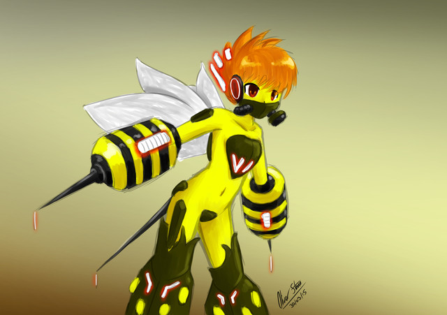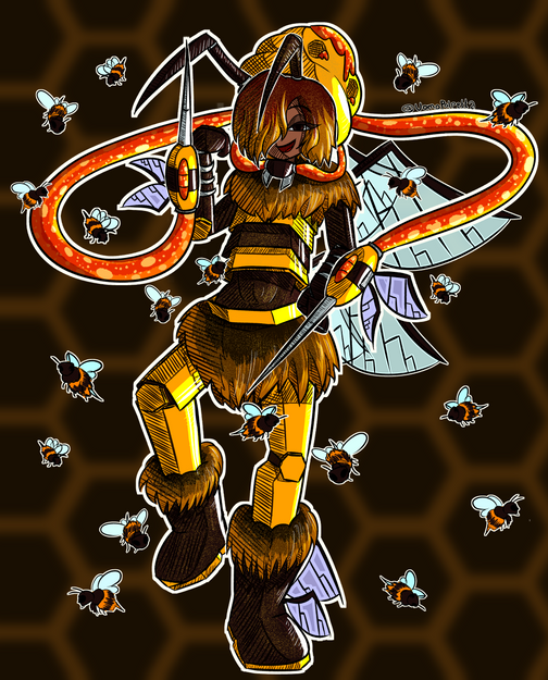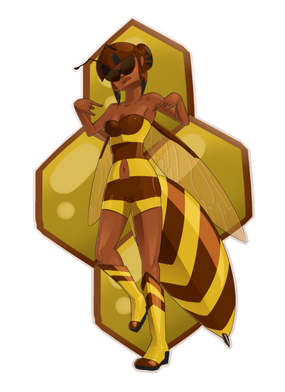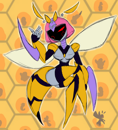 Here is my latest female experiment! She is designed to generate Super sweet and Super Sticky Honey. She has a Hive full of Honey Bee Drones that can help spread the honey, leaving stuff sticky and stuck together. I know a loto f people hate to be sticky so she is really wicked. Since she is the "queen bee" technically speaking she never really does anything. she makes her bee Drones do all the work while she just sits back, producing Honey. Still, I do love Honey~I think she turned out great! The Honey Comb chest, the stripey boots and arm things, her little Propellar on her stinger, everyhtign ^_^ plus I went out and shaded her so she'd look awesomer so as always please leave lots of comments and feedback ^-^