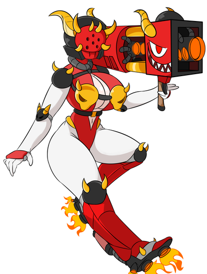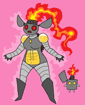 here is the Remake of my second G.R.L.S experiment girl. She was designed with a Flame thrower. her body contains heated Lighter fluid to fuel her massive flame thrower arm and burns to power her body. herh ead releases the black smoke from the burning fuel. She can shoot a stream of fire and even shoot fireballs with great accuracy! Only problem is she is a bit of a hot head, so she snaps at me anytime I try to do maintenance on her. Fire burns T_TI like her redesign! She looks a lot better now, plus I liek the mismatched uber Arm! I especially like the Grill Lid skirt andh er billowy smoke hair XP anyway hope ye like her and leave plenty of comments and junk as always!