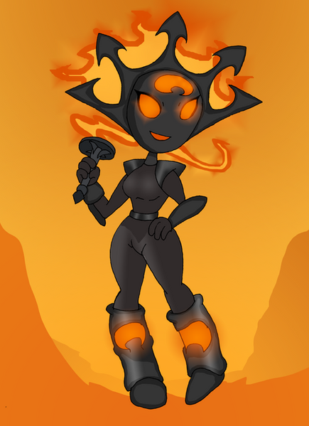 Here is my Latest Experiment girl! Took a while but here is another Firey girl. 38 is designed with a Geomancic Magnetic field, allowing her to control and manipulate Lava. Her body is comprised of Special heat Resistant Metals. Her "Lava Lamp" like Lower half she uses to contain Lava, while the rest pours out the top of her head and neck, giving her her hair and sleeves~ Sheh as Metallic Arms underneath. I originally planned on having her maintain the Thermal Cores in the Lab, and she does, but othertimes I dont see her doing much of anyhting else. she seems so uncaring but not miserable~ hmmm....THIS TOOK FOREVER TO DO! THe lava was a pain in the things >.< But lok ath er! she looks amazing! I am very proud of her design <3 Anyway, not much else to say but enjoy and please leave lots of feedback <3