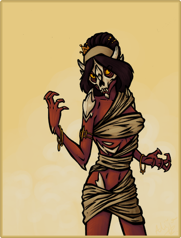 Here is my latest feminine experiment! I designed 8 here wiht Sand manipulation powers. Her perfect (and literal) hourglass figure contains sand for her to control and cover herself in. She can only fill the hourglass up though so she can't hold that much sand. only problem with her is that she seems to be focused on her weight, so she doesn't fill her Hourglass up like she should.Eitherway, I think she turned out awesome! A boney Sandy Mummy lady, very nice. The Sand forms around ehr boney structure to give her "skin" and what not, so she's mostly metal and bones underneath ^^' Still though, considering the month a Mummy seemed like a good idea XD So as always please leave plenty of feedback and stuff ^^'