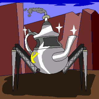 Here's something I drew just for the Halibut.Back during the whole Steampunk days, this fella was seen in one of the Active factory districts roaming down the street in the night. Sage has yet to admit whether or not he was around then to build this thing, so noone really knows where he came from.