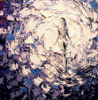 The entire piece was created by "tapping" the palette knife to the surface thousands of times over to create a complete continuous texture over the canvas surface. Only a knife and pure paint was used, no brushes, mineral spirits, or medium. Just knife and paint. As pure as the scene depicted....
