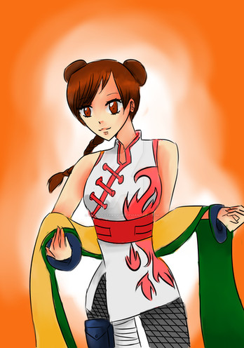 TenTen hairdo and dress are chinese style. And "Lee" and "TenTen" names sound chinese. ^^'