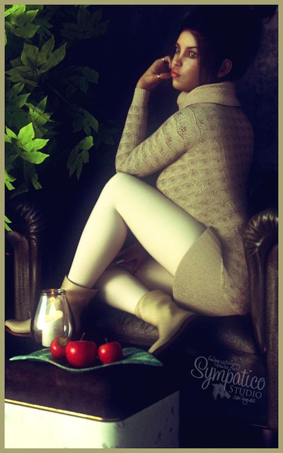 This is a promotional render done for Sympatico Studio for "High Knit G3F" (featured dress), by nirvy, now available at Renderosity. Thanks so much for looking!!