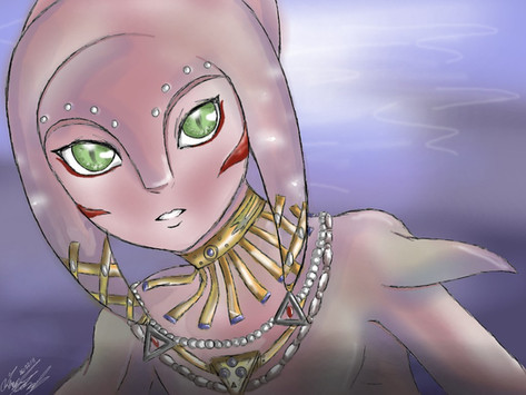 I was checking my deviations on dA when I saw an amazing LoZ fan art and this person placed a link to that gallery in their artist's comment, and yes, I do read every single artist comment in comparison to other people!!! It was so amazing to see that I felt extremely inspired to, I don't know why, but draw a fanart of the Zora, also one of Saria as you would've guessed.