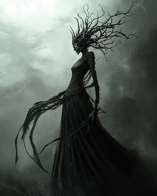 #ai #artwork #darkfantasy #darkmagiciangirl #darkness #dressdesign #fantasy #folklore #horror #horrorfantasy #aiart #folkloreinspired #darkfantasycharacter #aiartcommunity #midjourney #midjourneyart