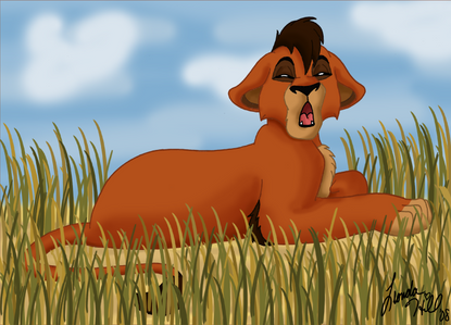 I don't know...he just looks like he wants to ask the viewer a question.-"You think Kiara got her personality from Nala or someone else? Couldn't have been me..."