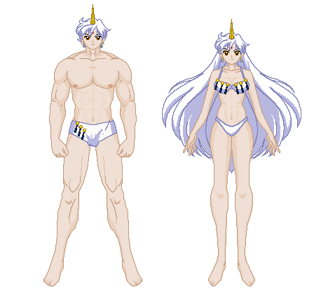 Gender Bender Kunzite general the dark Kingdom female, in the two versions.From left to right: Classic anime and sailor moon crystal.