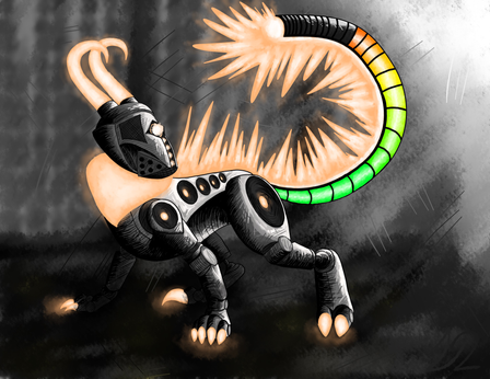 i made a robotic creature based on an old sketch i did BASED ON something i dreamt.im gonna keep this boi