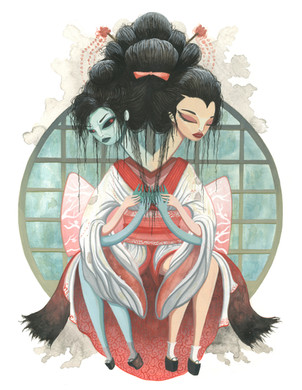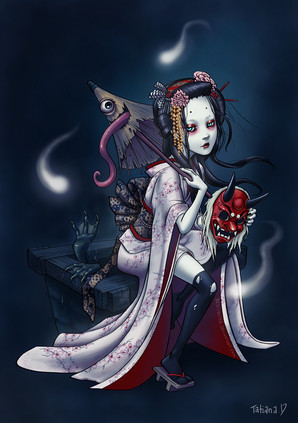 Light & shadow are so dramatic, as if this was going on on some theatrical stage (who knows, this might also be play about spirit of ancient geisha who knew way too many things?)