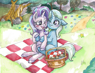 #magic #mlp #mylittleponyfriendshipismagic #pony #fanart #unicorn #female #friends #mare #trixielulamoon #starlightglimmer