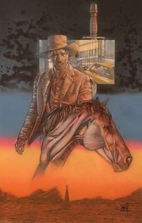 I know a lot of people didn't care for the last two Matrix movies, but come on, how can you complain with that great car chase scene and then when Neo is flying with cars and debris behind him? Well, obviously I was impressed and I had to express my appreciation in a painting.Acrylic on Illustration Board