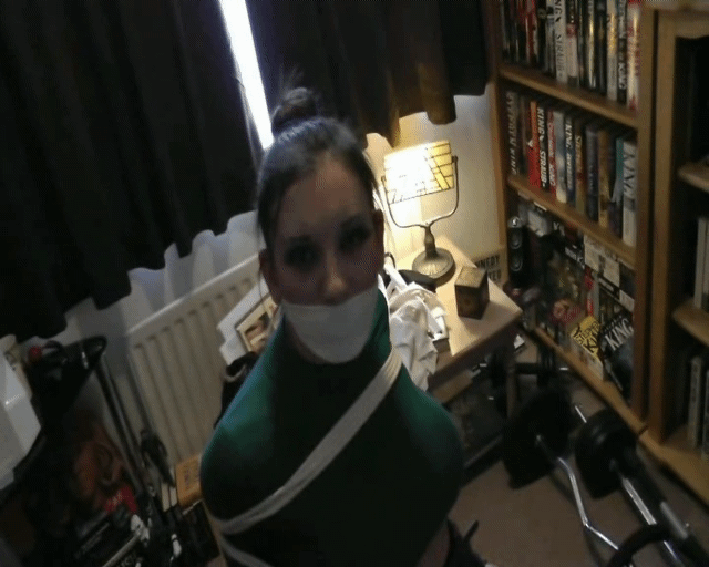 Just as the hogtie is finished on her, Emily loses the battle against her drool as well.Related content