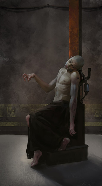 He sits on his thrown of rusted old, stares into the empty void.
