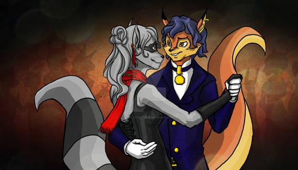 What's this?! Sly Cooper fan art that ISN'T Genderbender?! CURVE BALL!!One thing I'm really curious about in Theives in Time is how Sly & Carm's relationship ends. Because you can assume that once he goes back to being a thief (or either of them comes out about lying to the other) that that would end the relationship right away. I'm hoping they can work it out somehow, because they're one of my all time favourite couples.