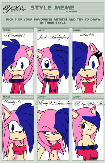 ProgressofTomorrow did this meme and it looked like a lot of fun, so I decided to give it a shot! It’s amazing how many different ways different artists can interpret the same character and I adore all of these artists. It was fun studying and trying to replicate your styles! I tried posing Amy in similar-ish poses throughout but some of em just needed to have a little deviation to help bring out the individual personality to the style.