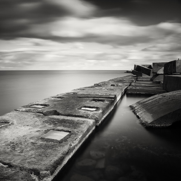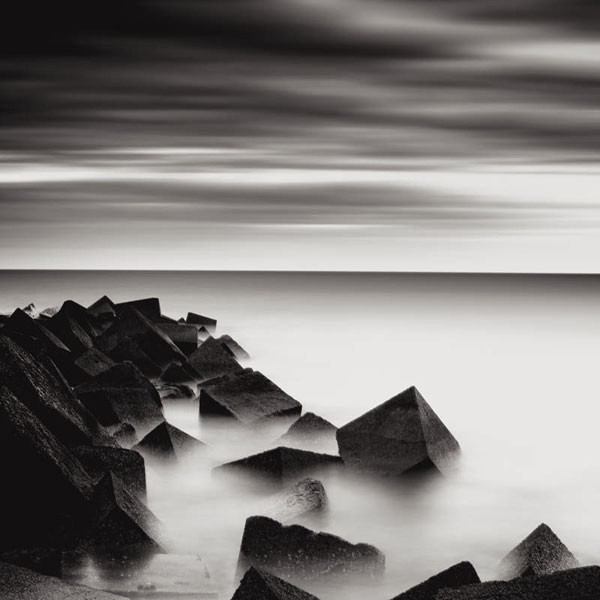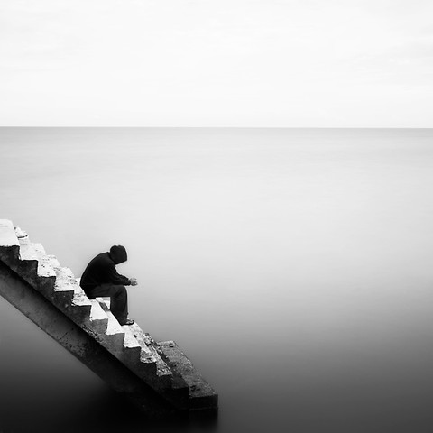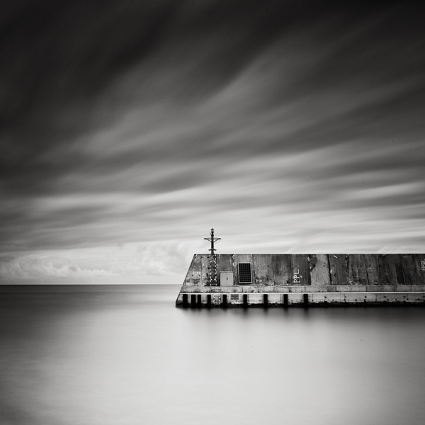 A truly great shot. What makes it great is the contrast between the motion of the clouds and the stillness of the scene underneath, but also the lack of colours: in black and white it conveys to me a sense of moodiness and beauty which I suspect it wouldn't have were it in colour. And on top of that, the man stood still long enough to not appear blurry! It would have been a beautiful photo without him too, but the fact that he's there just adds an extra touch, which I find adds a lot the picture: makes it more pensive.