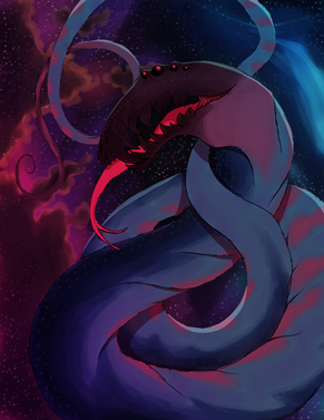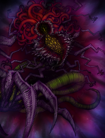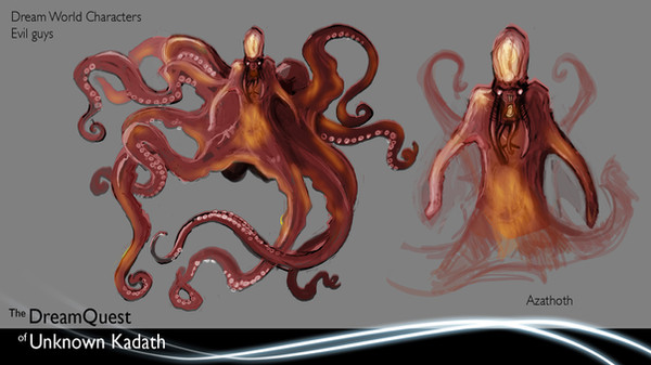 Giant octopus floating in space? Umm... I was under the impression he was also the one who created all of the other gods and, by extension, the entire universe unwittingly; the blind idiot god who sleeps at the center of all infinity, lulled to sleep by the unholy music of a thousand lesser deities for, should he ever wake, there shall be neither gods and worlds no more.