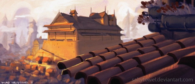 I love the shading and colours in this one. The perspective is great too, very unusual ^^