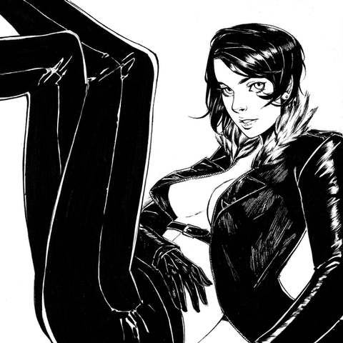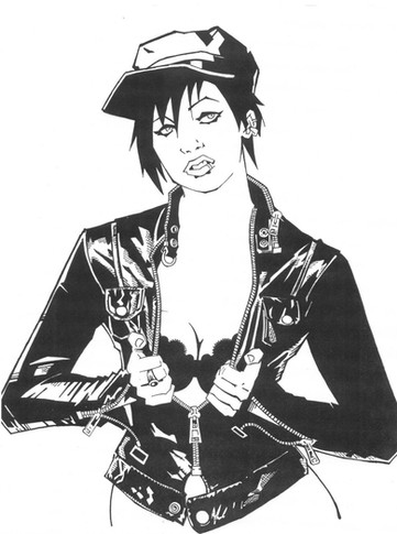 Your style is very printable. My only problem with it is that I can still see some of your pencil lines through the pink, and there are a few small gaps in the black. I love the way you draw faces, though. =O