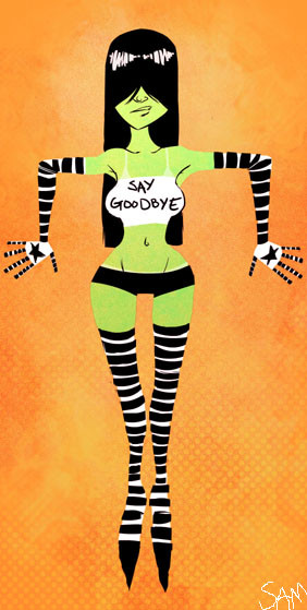 Super-cool! Your linework is flawless as always. And all your characters have the best attitude! The colours on background, face and torso are, as you say, super-rad, but the legs seem a bit over-worked to me.....