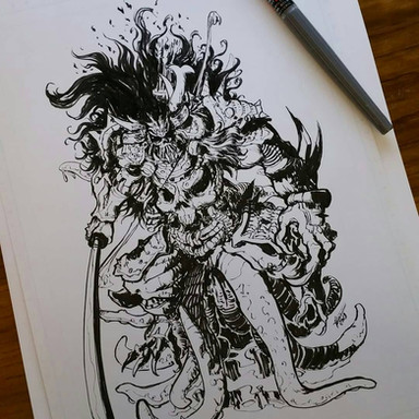 #digitalartwork #digitaldrawing #ink #oni #skull